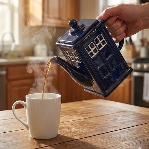 La hora del lonchecito con un estilo muy particular y original, deja que el popular Tardis, la icónica nave del Dr. Who conserve tu bebida caliente.